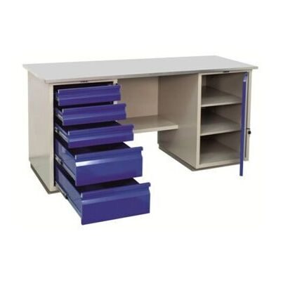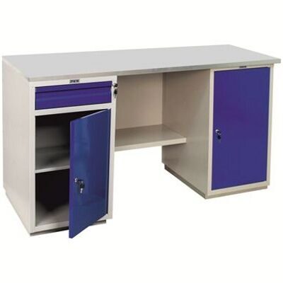 Двухтумбовый верстак комплектуется из двух блоков хранения. Их можно подобрать одного типа или скомбинировать — в зависимости от специфики работ.