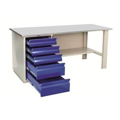 Как выбрать между WD-1, WD-2 и WD-5? WD-1 — для лёгких и средних работ: монтаж, сборка, проверка. WD-2 — для постоянных нагрузок и интенсивной эксплуатации. WD-5 — максимальная нагрузка на столешницу (750 кг) и пять выдвижных ящиков с телескопическими направляющими: для тяжёлых производственных условий.