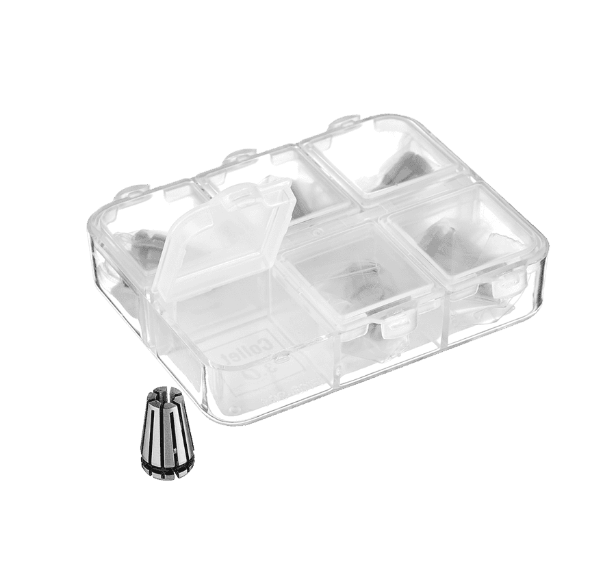 - Комплектуется набором цанг из прочной инструментальной стали