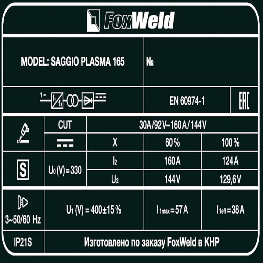 Аппарат плазменной резки FOXWELD SAGGIO PLASMA 165