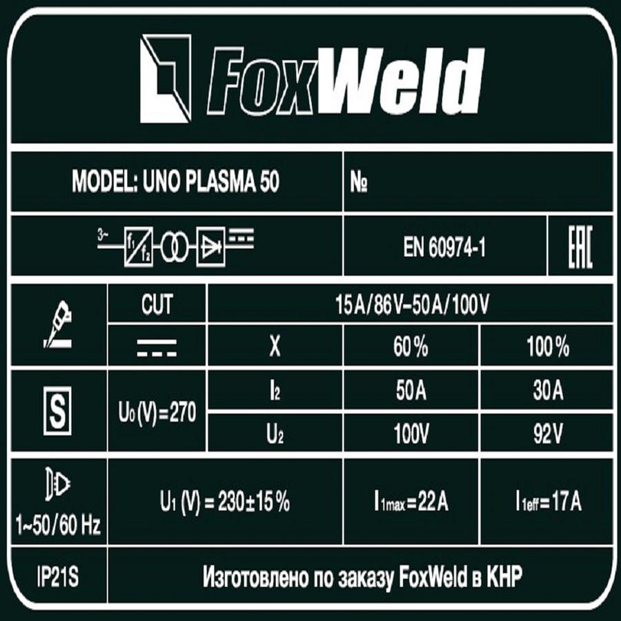 Аппарат плазменной резки FOXWELD UNO PLASMA 50