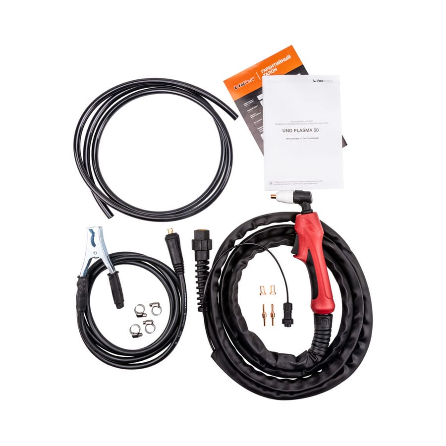 | Комплект поставки | Аппарат плазменной резки UNO PLASMA 50 – 1 шт.; Плазмотрон PT-31, 3 м. – 1 шт.; Зажим для заземления с кабелем, 2 м. – 1 комп |