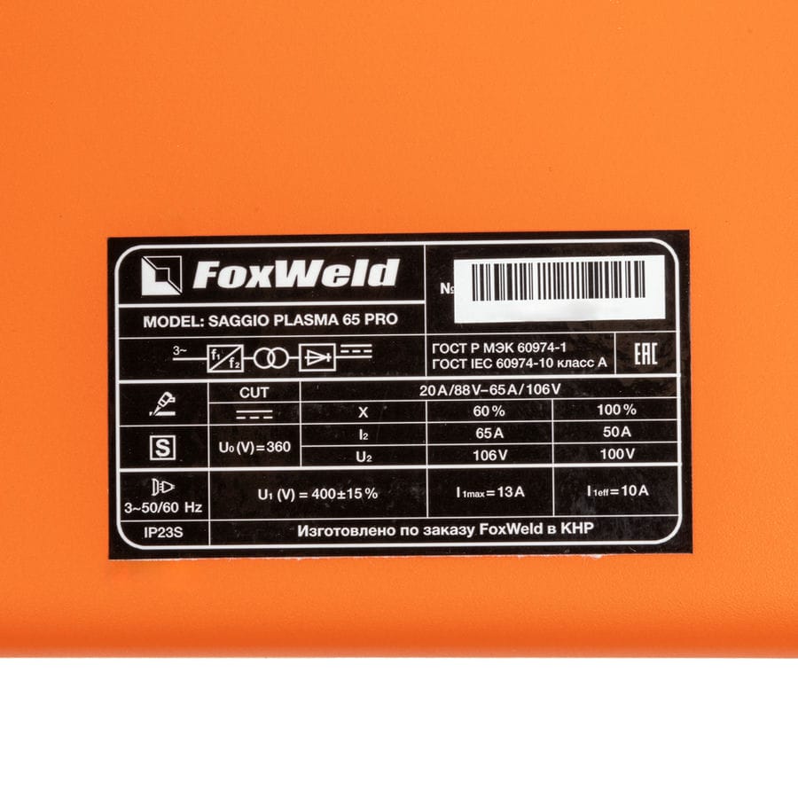 | Максимальный сварочный ток (А) | 65 |