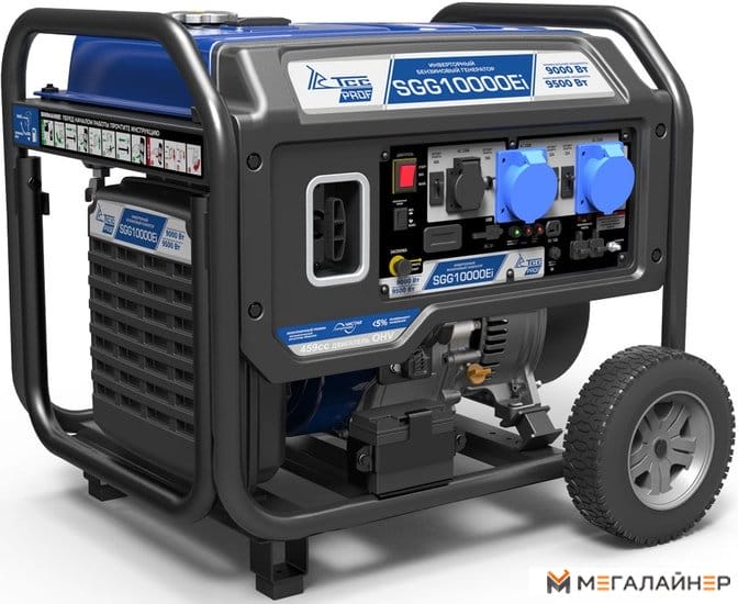 Инверторный бензогенератор ТСС SGG 10000Ei — мощная профессиональная модель с электростартером и функцией сварки (MMA). Номинальная мощность 9 кВт, максимальная 9.5 кВт. Вырабатывает чистый синус, подходит для чувствительной электроники.