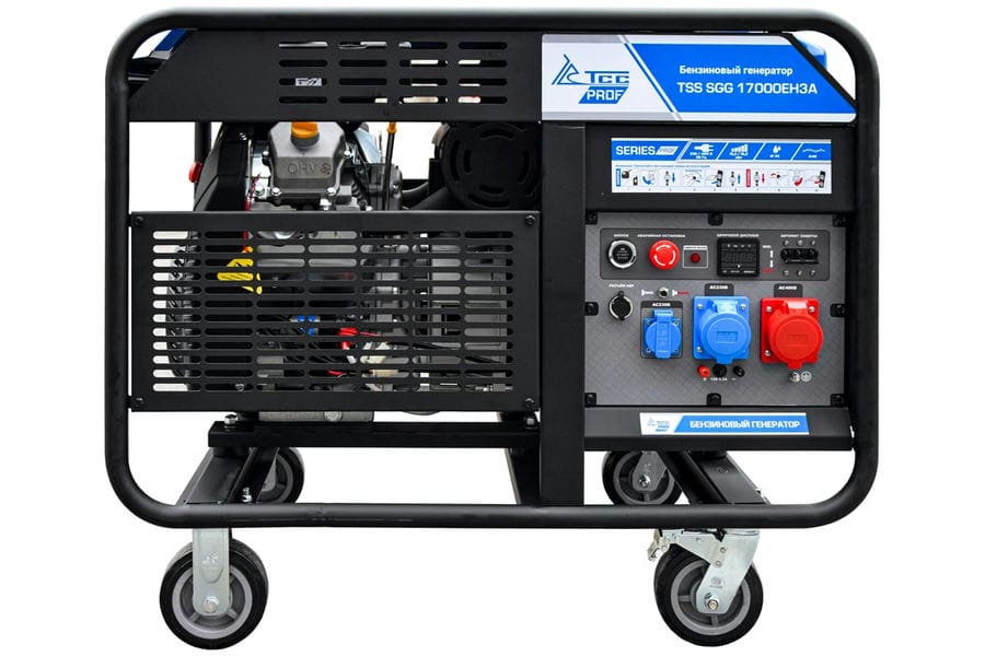 Трёхфазный бензогенератор ТСС SGG 17000EH3A профессиональной серии с двигателем LIFAN увеличенного ресурса. Номинальная мощность 15.5 кВт (макс. 16.5 кВт). Электростартер, 40-литровый топливный бак, колёсный комплект. Предназначен для питания трёхфазного оборудования на стройках, в автосервисах, на предприятиях.