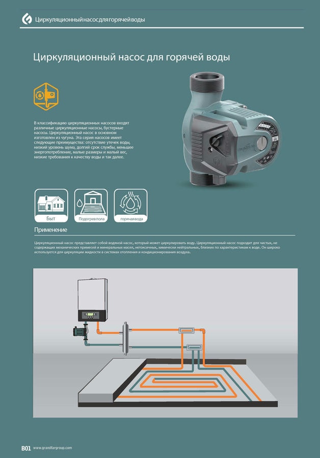 Циркуляционный насос GS15-6-130 GRANDFAR