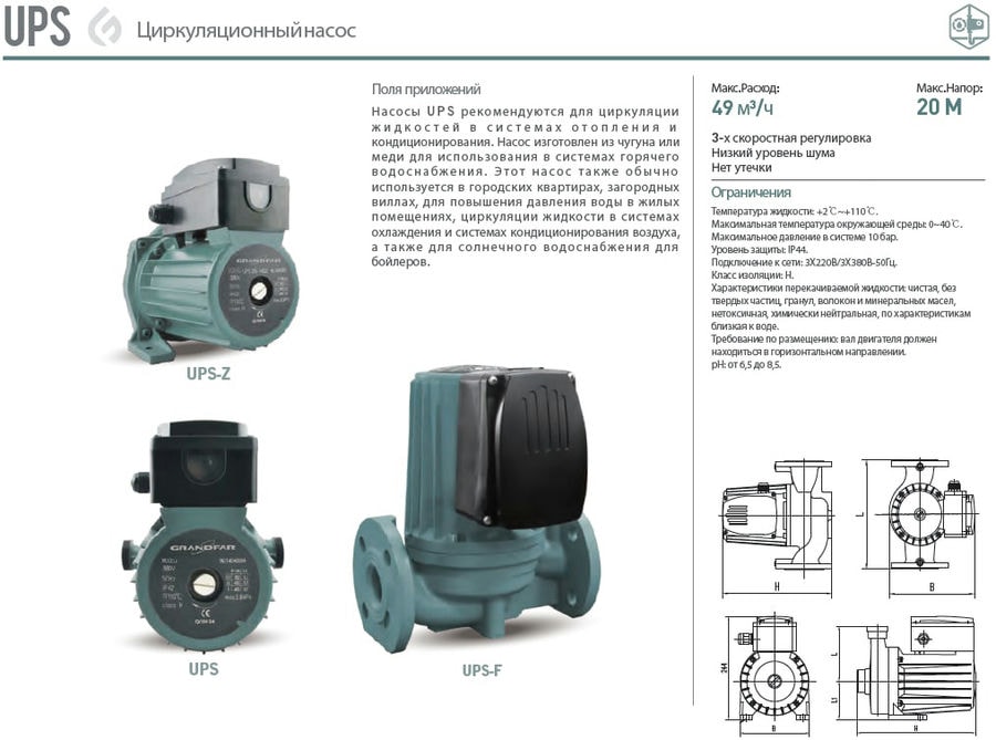 Циркуляционный насос UPS40-12-250TF GRANDFAR