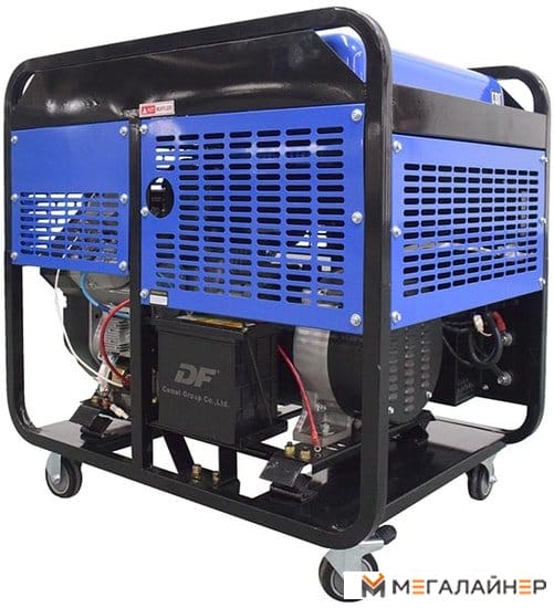 Дизельный генератор 10 кВт (380 В) со сварочной функцией. Двигатель 997 см³, бак 25 л, электростартер, колёса. Для профессионального использования.