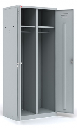 Металлический шкаф ШРМ-АК/800 — это усиленная версия популярной двухсекционной модели с увеличенной шириной 800 мм. Каждое из двух отделений получает комфортные 400 мм внутреннего пространства, что особенно важно при хранении объемной спецодежды, зимних курток или форменного обмундирования. При этом шкаф сохраняет все преимущества разборной конструкции: удобство транспортировки, плоскую упаковку и возможность установки в помещениях с ограниченными проемами.
