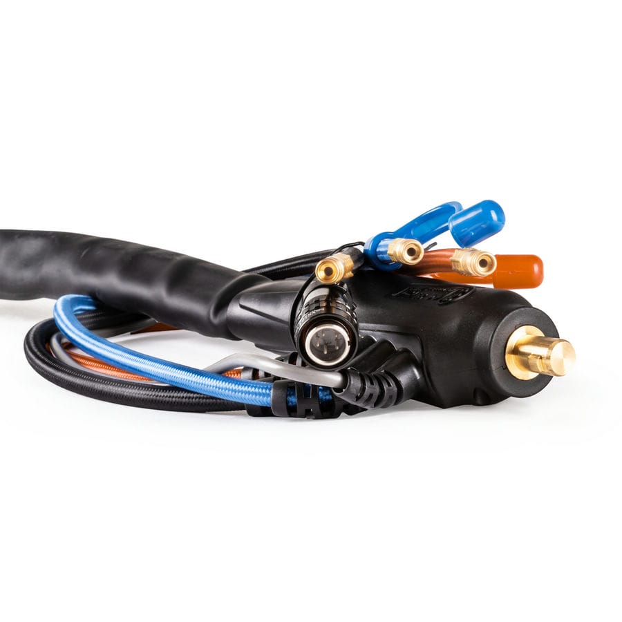 Силовой кабель из бескислородной медной проволоки маленького диаметра обеспечивает превосходную гибкость, увеличивает срок службы и снижает рабочую температуру. Дополнительная защита шлангового пакета из мягкой кожи повышает гибкость, обеспечивая максимальный комфорт при сварке потолочных и вертикальных швов.