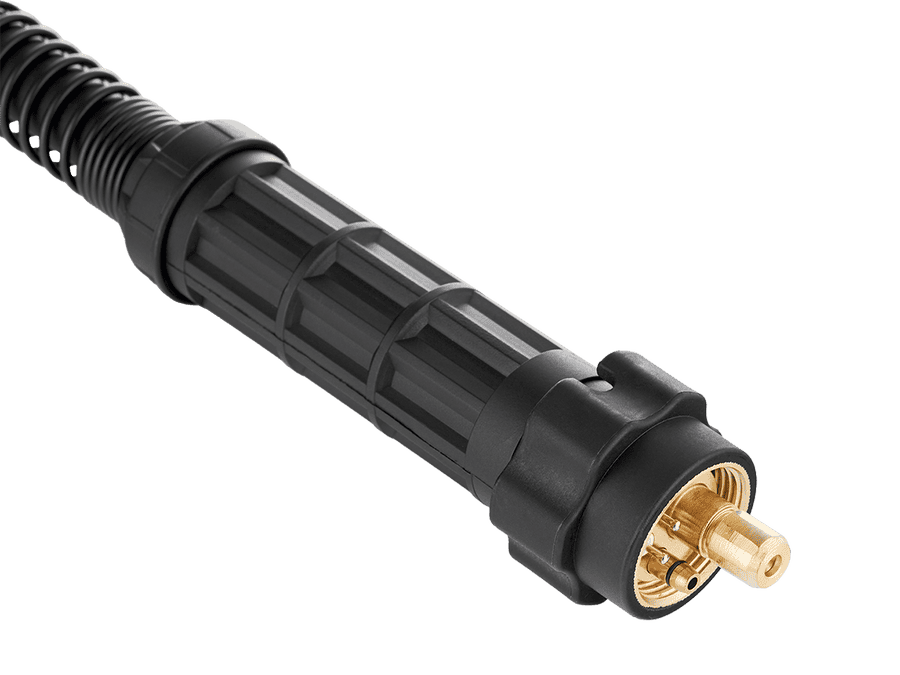 Шарнирное соединение повышает удобство вращения горелки во время работы. Также обеспечивается лучшее соединение между рукояткой и металлической пружиной. Надежная металлическая пружина исключает перегибание кабеля и обеспечивает более плавную подачу проволоки в любом положении горелки.