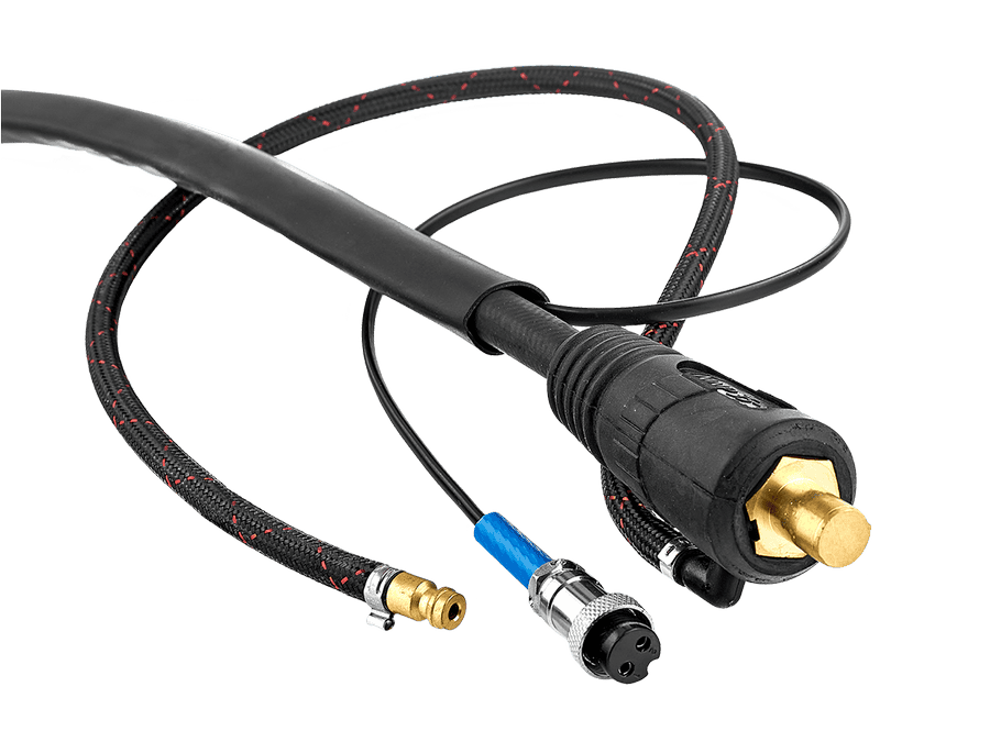 Благодаря замене стандартной резиновой оплетки на тканевую силовой кабель обладает невероятной гибкостью и легкостью, что существенно улучшает комфорт во время сварки. Сечение силового кабеля обеспечивает хорошую проводимость тока и позволяет работать на максимальных нагрузках. Силовой кабель обладает равномерной теплопередачей. Использование высокотехнологичных материалов кабеля повышает его износостойкость.
