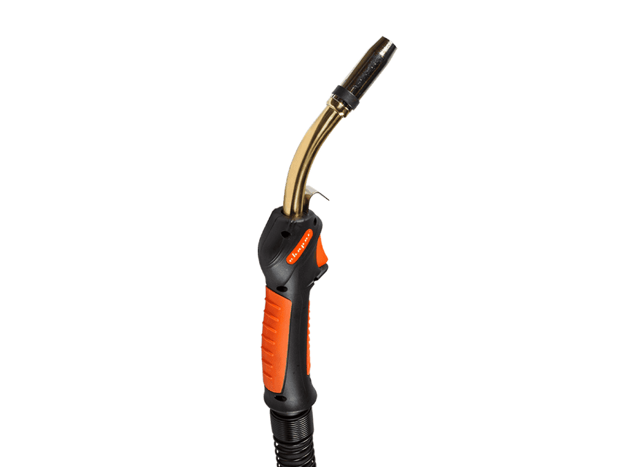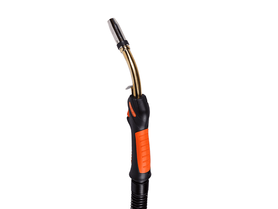 Шарнирное соединение повышает удобство вращения горелки во время работы. Также обеспечивается лучшее соединение между рукояткой и металлической пружиной. Надежная металлическая пружина исключает перегибание кабеля и обеспечивает более плавную подачу проволоки в любом положении горелки.