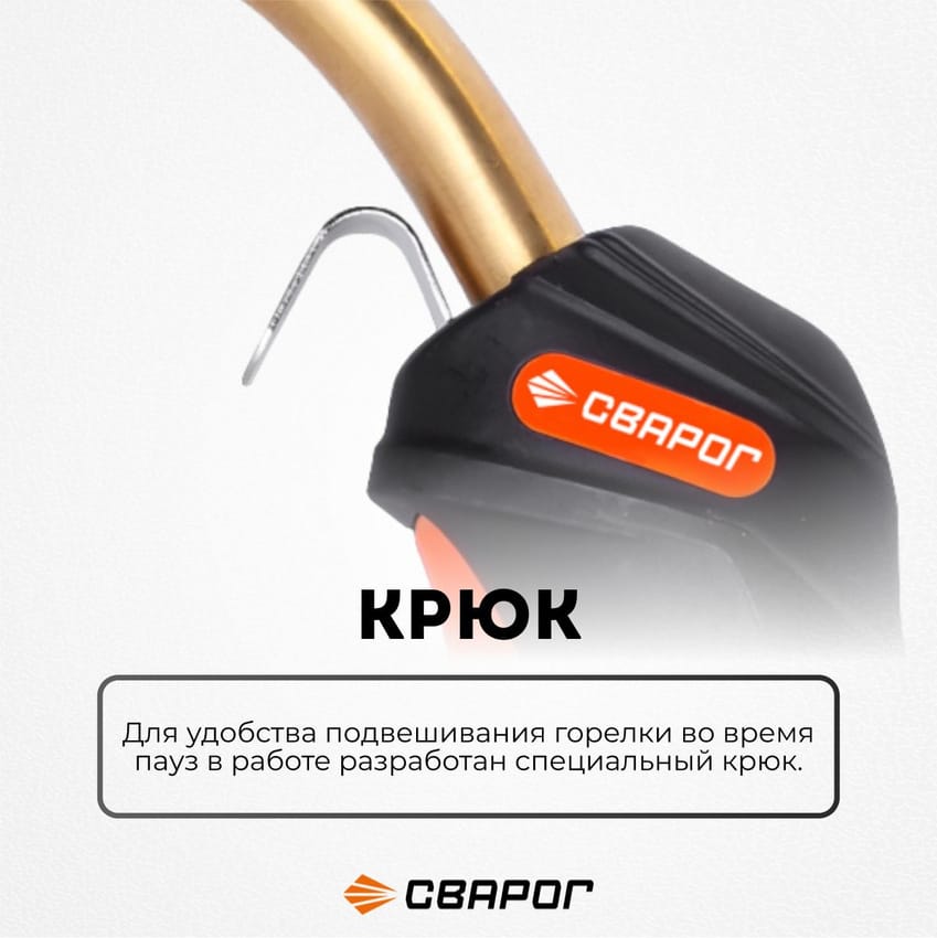 Для удобства подвешивания горелки во время пауз в работе разработан специальный крюк.