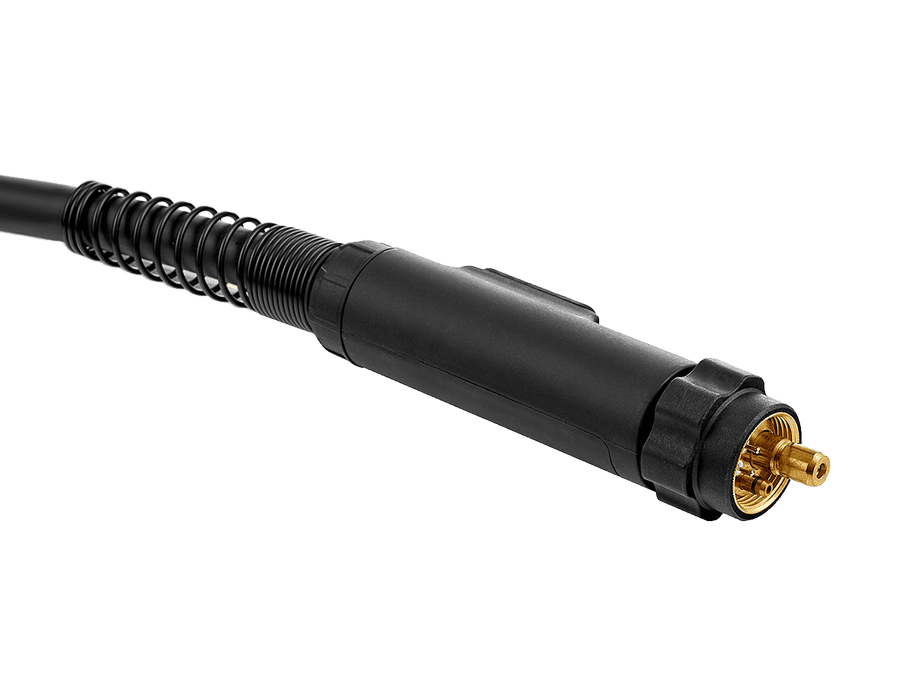 Шарнирное соединение повышает удобство вращения горелки во время работы. Также обеспечивается лучшее соединение между рукояткой и металлической пружиной. Надежная металлическая пружина исключает перегибание кабеля и обеспечивает более плавную подачу проволоки в любом положении горелки.
