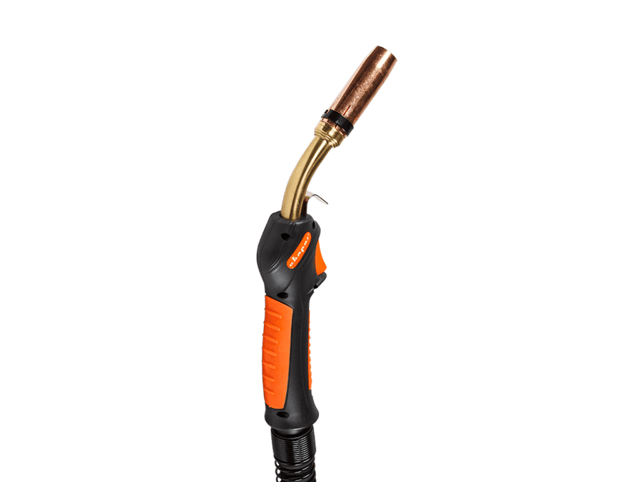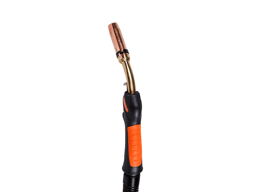 Шарнирное соединение повышает удобство вращения горелки во время работы. Также обеспечивается лучшее соединение между рукояткой и металлической пружиной. Надежная металлическая пружина исключает перегибание кабеля и обеспечивает более плавную подачу проволоки в любом положении горелки.