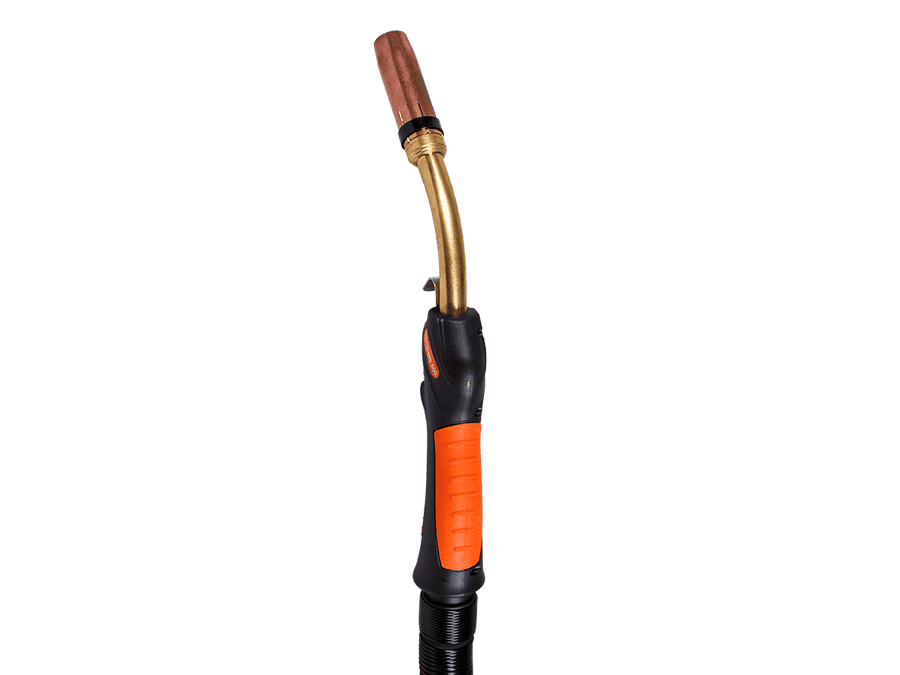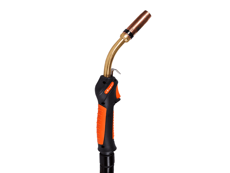 Шарнирное соединение повышает удобство вращения горелки во время работы. Также обеспечивается лучшее соединение между рукояткой и металлической пружиной. Надежная металлическая пружина исключает перегибание кабеля и обеспечивает более плавную подачу проволоки в любом положении горелки.