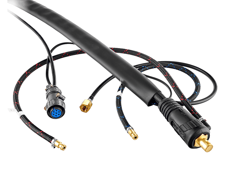 Благодаря замене стандартной резиновой оплетки на тканевую силовой кабель обладает невероятной гибкостью и легкостью, что существенно улучшает комфорт во время сварки. Сечение силового кабеля обеспечивает хорошую проводимость тока и позволяет работать на максимальных нагрузках. Силовой кабель обладает равномерной теплопередачей. Использование высокотехнологичных материалов кабеля повышает его износостойкость.
