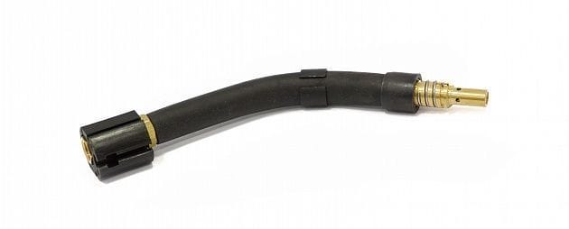 Гусак – заменяемая часть горелки для полуавтоматической сварки. Замена гусака может потребоваться в случае выхода из строя данного элемента либо необходимости выполнения специфичных сварочных задач. На гусак устанавливаются сопло и наконечник. В рукоятке горелки гусак подключается к силовому кабелю и шлангу подачи газа. Если горелка оснащена жидкостным охлаждением, на гусаке появляются фитинги для подключения воды.