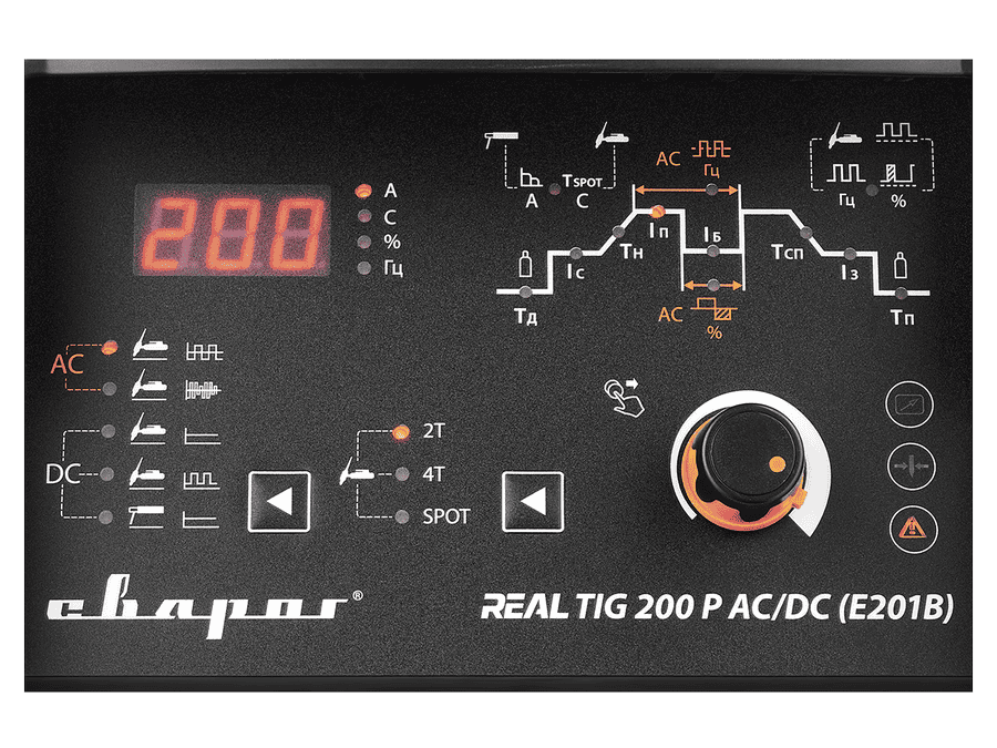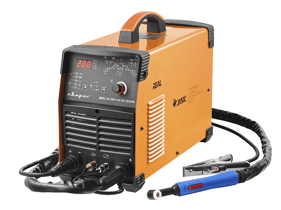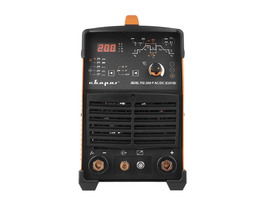 REAL TIG 200 P AC/DC (E201B) — инверторный сварочный аппарат с режимом аргонодуговой сварки (TIG) на постоянном (DC) и переменном токе (AC), ручной дуговой сварки (MMA) на постоянном (DC) токе