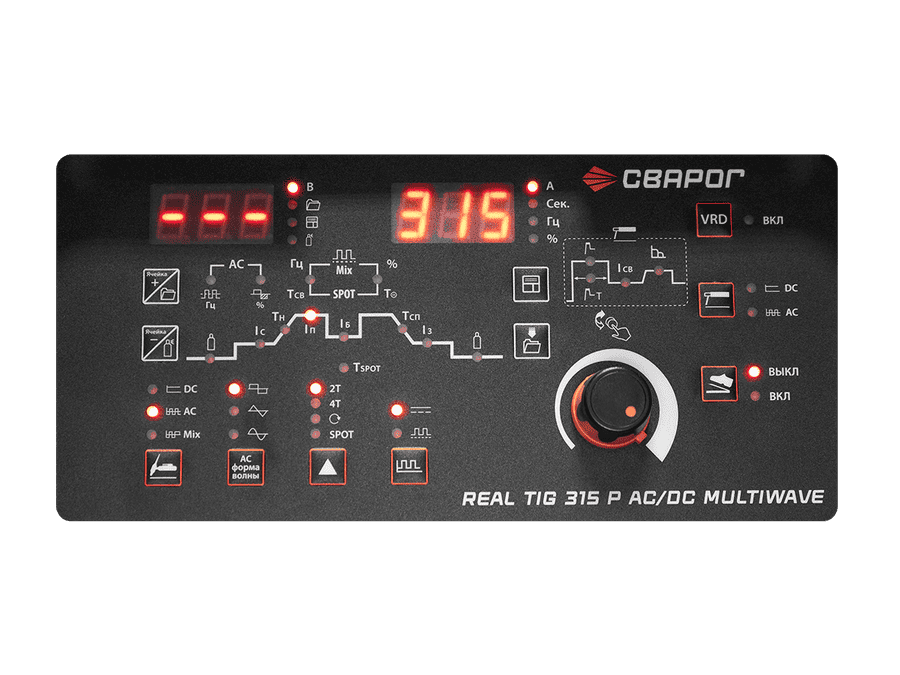 Аппарат REAL TIG 315 P AC/DC MULTIWAVE имеет удобную систему управления