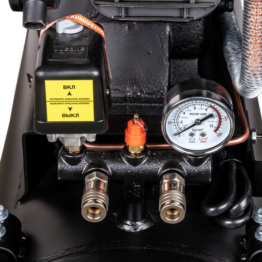 AEROMAX 480/100 — воздушный трехпоршневой масляный компрессор с ременным приводом с увеличенной производительностью в 480 литров в минуту и вместительным ресивером на 100 литров. Предназначен для всех видов профессиональных работ. Данная модель оснащена однофазным электродвигателем 230 В / 50 Гц и может эксплуатироваться на объектах где отсутствует или весьма затруднен доступ к трехфазной электросети, например, при осуществлении штукатурных или строительных работ в жилых зданиях. Высокая производительность компрессора позволяет подключать самый широкий перечень пневмоинструмента различного назначения, в том числе, хоппер-ковш и оборудование для плазменной резки, что позволяет эффективно эксплуатировать его в строительстве, шиномонтажных и детейлинговых мастерских. Ременная передача компрессора закрыта решеткой, предотвращающей её повреждение, а также травмирование пользователя в случае обрыва ремня. Большой объем ресивера сокращает частоту отключений компрессора при падении давления до минимального значения. При необходимости, ресивер компрессора может быть оснащен двумя выходами на которые могут быть установлены шаровые краны 1/2″ для максимальной подачи воздуха с минимальным внутренним сопротивлением. Четыре колеса и удобная высокая ручка гарантируют простоту перемещения устройства. Указатель уровня масла в системе позволяет своевременно проводить обслуживание агрегата. Наличие манометра и редуктора давления обеспечивает удобный контроль давления в системе, а аварийный выключатель красного цвета позволяет оперативно остановить работу ременного компрессора в случае неисправности. Подходит для плазменной резки и оборудования требующего большого расхода воздуха.