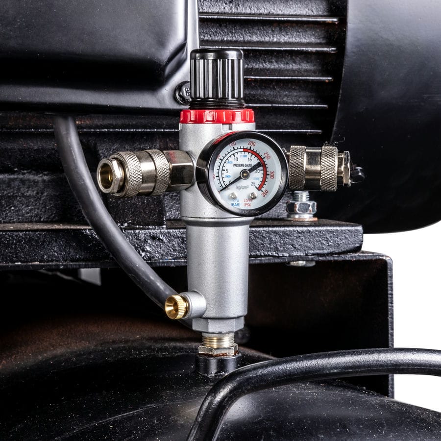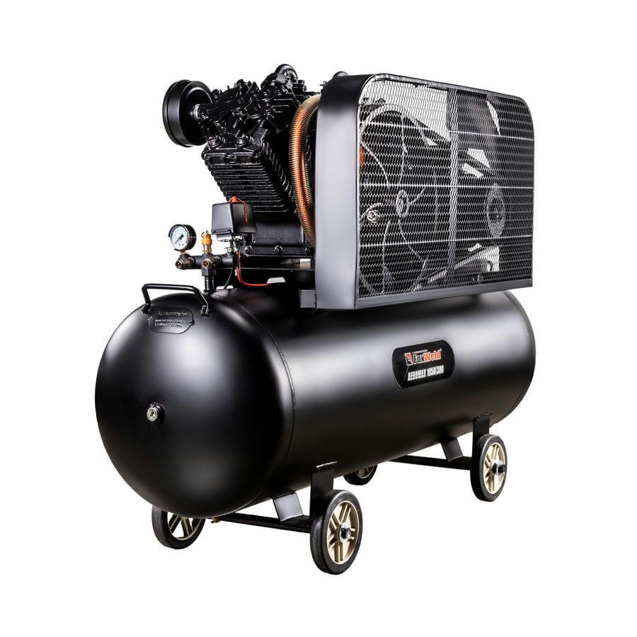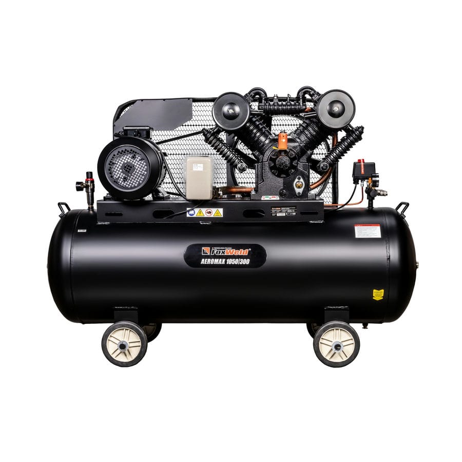 AEROMAX 1050/300 — воздушный четырехпоршневой двухступенчатый масляный компрессор с ременным приводом имеет наибольшее давление среди профессиональных компрессоров от Foxweld которое составляет 12,5 бар. Также данную модель отличает ресивер большого объема в 300 литров и высокая производительность 1050 л/мин. Такие впечатляющие рабочие характеристики обеспечивает крупная четырехпоршневая нагнетательная установка с двухступенчатой системой сжатия. AEROMAX 1050/300 подходит для выполнения всех видов профессиональных работ и длительной эксплуатации в условиях производственного цеха, автомобильной мастерской и строительной площадки. Трехфазный асинхронный электродвигатель, комплексная система теплозащиты, удобный доступ для визуального контроля уровня масла гарантируют высокий срок службы оборудования и контроль своевременности технического обслуживания. Стандартно компрессор оснащен четырьмя выходами с быстросъемными соединениями, одним регулятором давления с манометром, а также автоматическим реле с основным манометром для контроля уровня давления в системе. Дополнительно, ресивер компрессора может быть оснащен двумя выходами на которые, при необходимости, могут быть установлены шаровые краны 1/2″ для максимальной подачи воздуха с минимальным внутренним сопротивлением. Ременная передача закрыта решеткой, предотвращающей ее повреждение, а также травмирование пользователя в случае обрыва ремня. Четыре колеса обеспечивают возможность перемещения устройства. Ресивер имеет качественное покрытие, препятствующее образованию коррозии.
