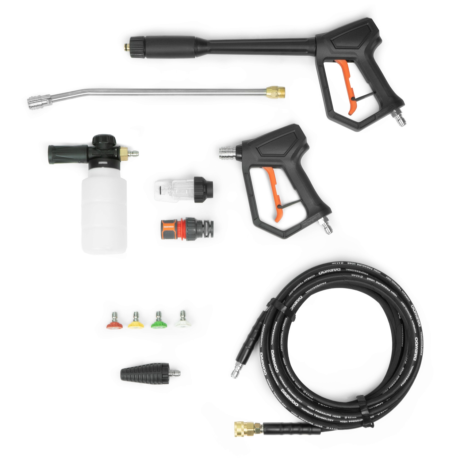 - 2-ой укороченный пистолет. Входит в комплект поставки и предоставляет удобное применение пеногенератора с подключение в один клик. Укороченный пистолет прекрасно подходит для мытья арок машины и работает со всеми насадками которые идут в комплекте. Обратный перевод на основной пистолет производится также в один клик.