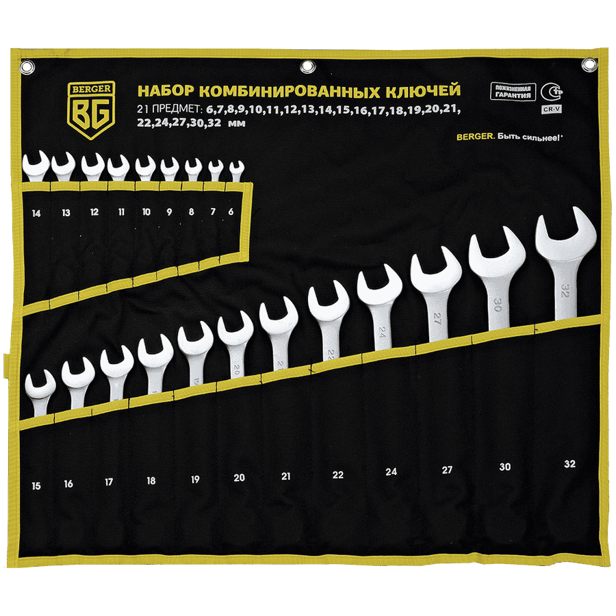 Набор ключей комбинированных 21 предмет в матерчатом чехле, 6-32 мм BERGER BG1146