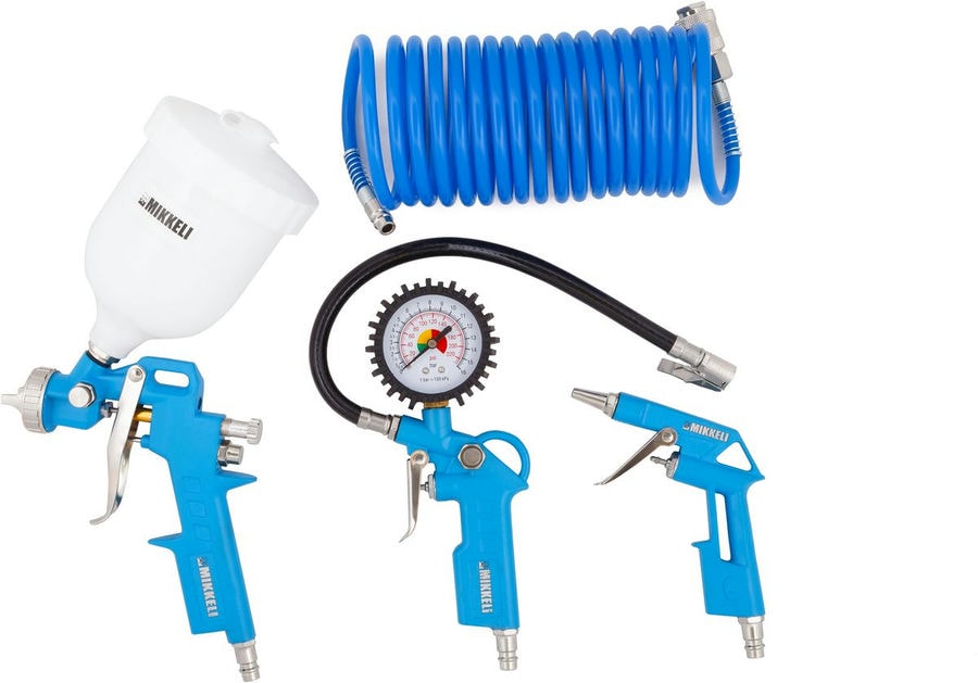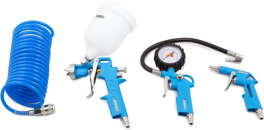 Набор пневмоинструмента 4in1 /MIKKELE/ (Краскопульт M-162, Пистолет для подкачки шин, Пистолет продувочный, Шланг 5м) /MIKKELI/Страна происхождения-Тайвань