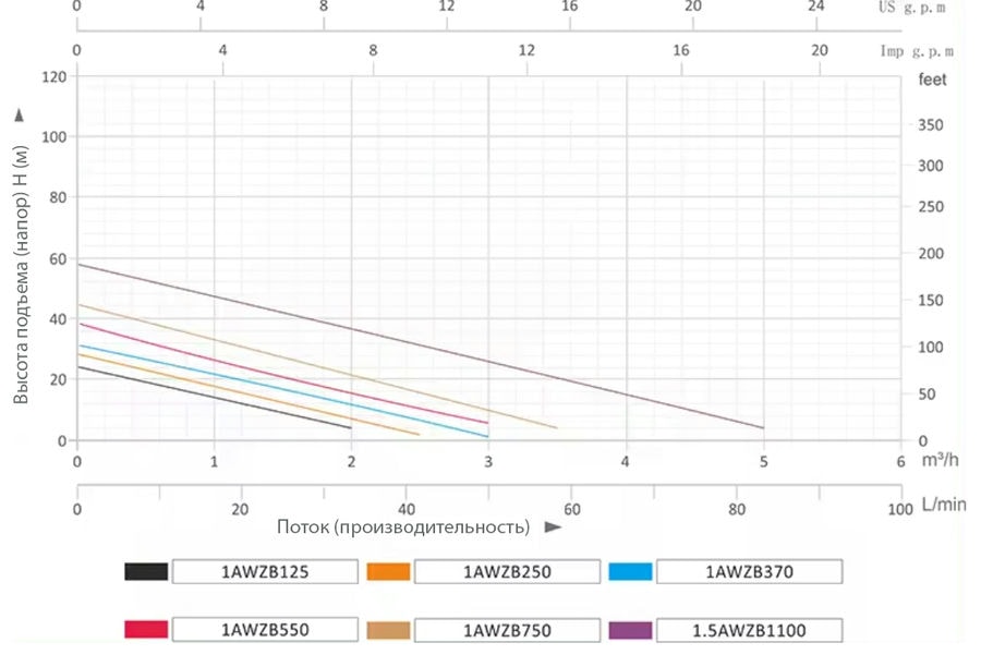 Поверхностный центробежный насос 1AWZB750 /GRANDFAR/ Страна происхождения Китай