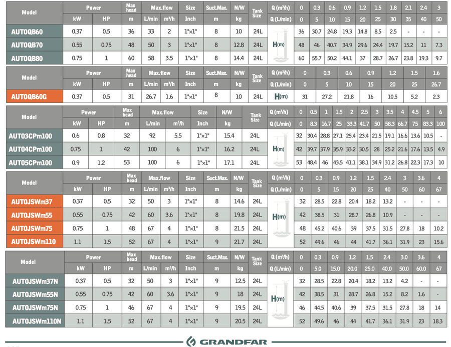 Насосная станция AUTOJSWm100 /GRANDFAR/ Страна происхождения Китай