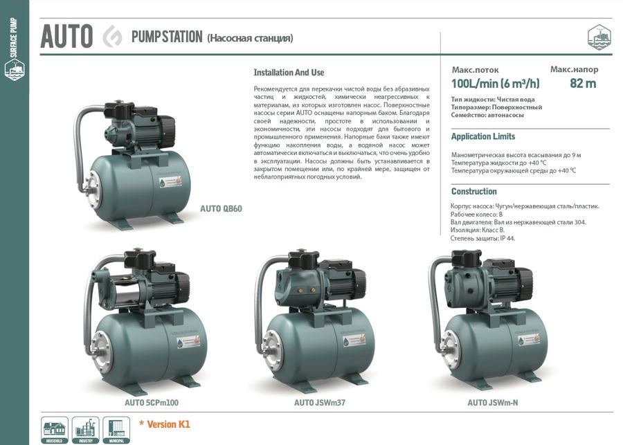 Насосная станция вихревая AUTOQB60 GRANDFAR