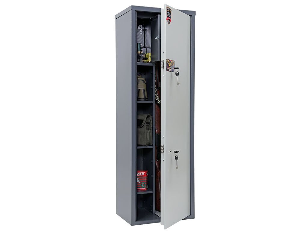 оборудован патронным отделением, запирающимся на ключ, полками и ложементами для ружей