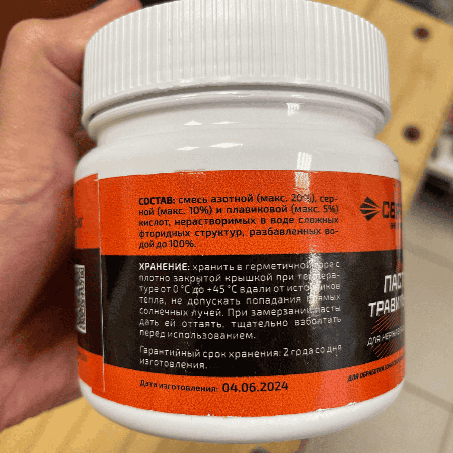 Паста травильная для нержавеющей стали удаляет следы побежалости и ржавчину, восстанавливает свойства нержавеющей стали.