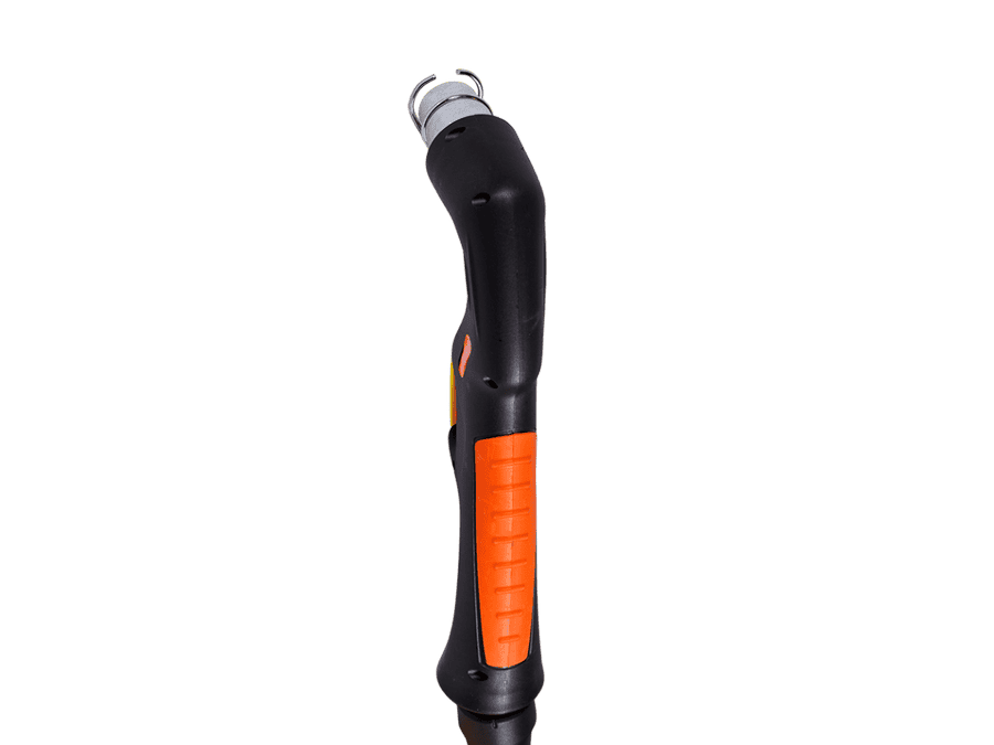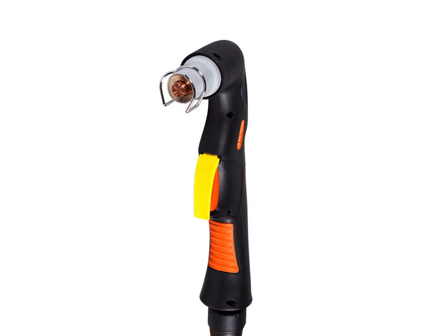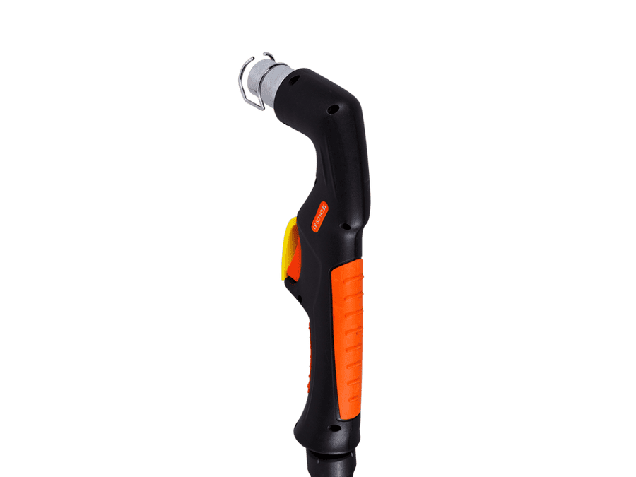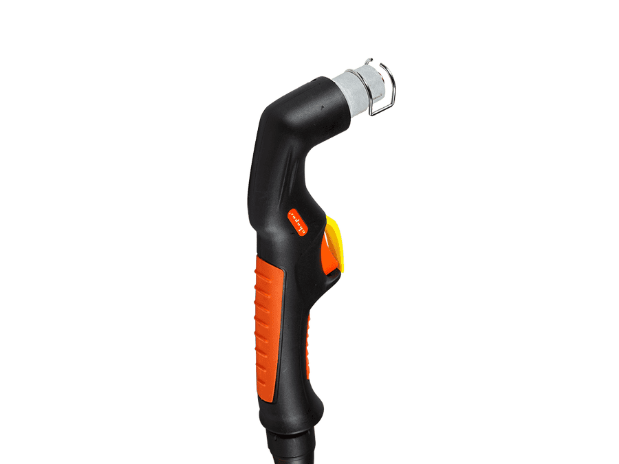 Специальный предохранитель курка препятствует незапланированному включению плазмотрона и повышает безопасность работы. Два пин-разъёма в рукоятке обеспечивают безопасность при смене расходных частей: плазмотрон не включится, пока не будет установлена защитная насадка.