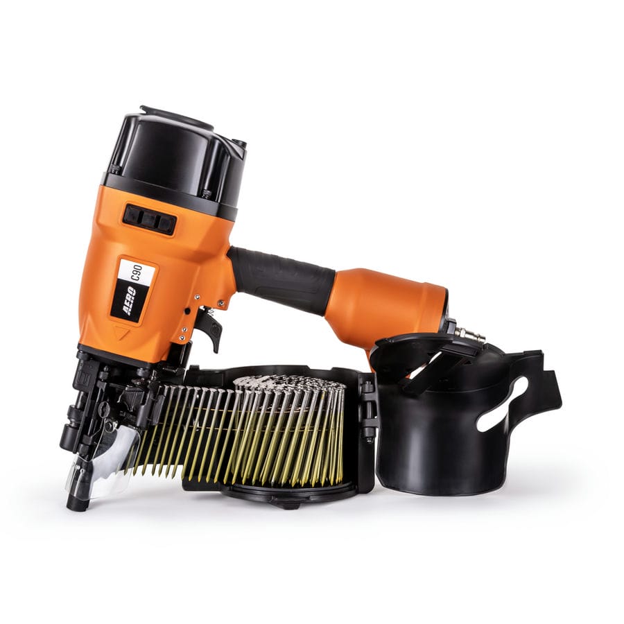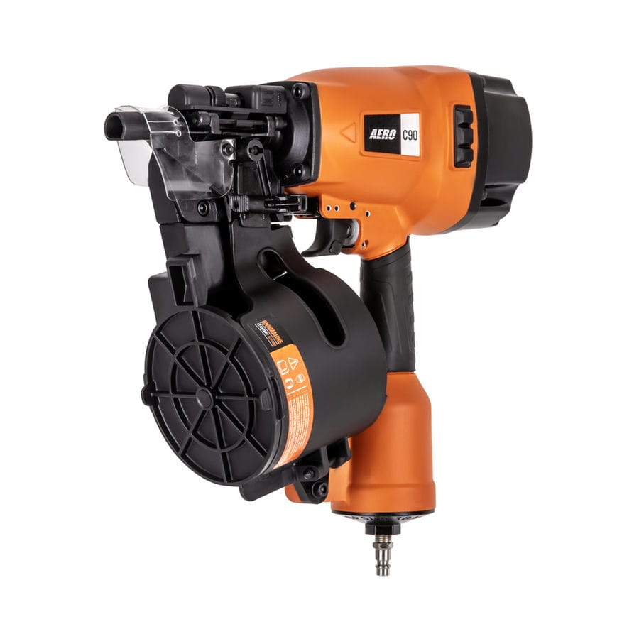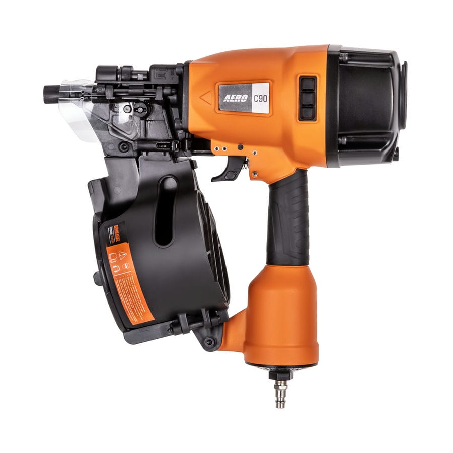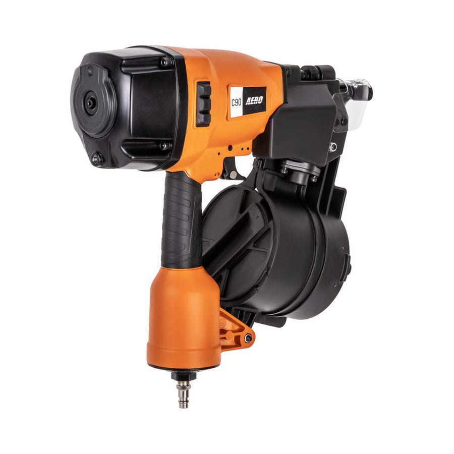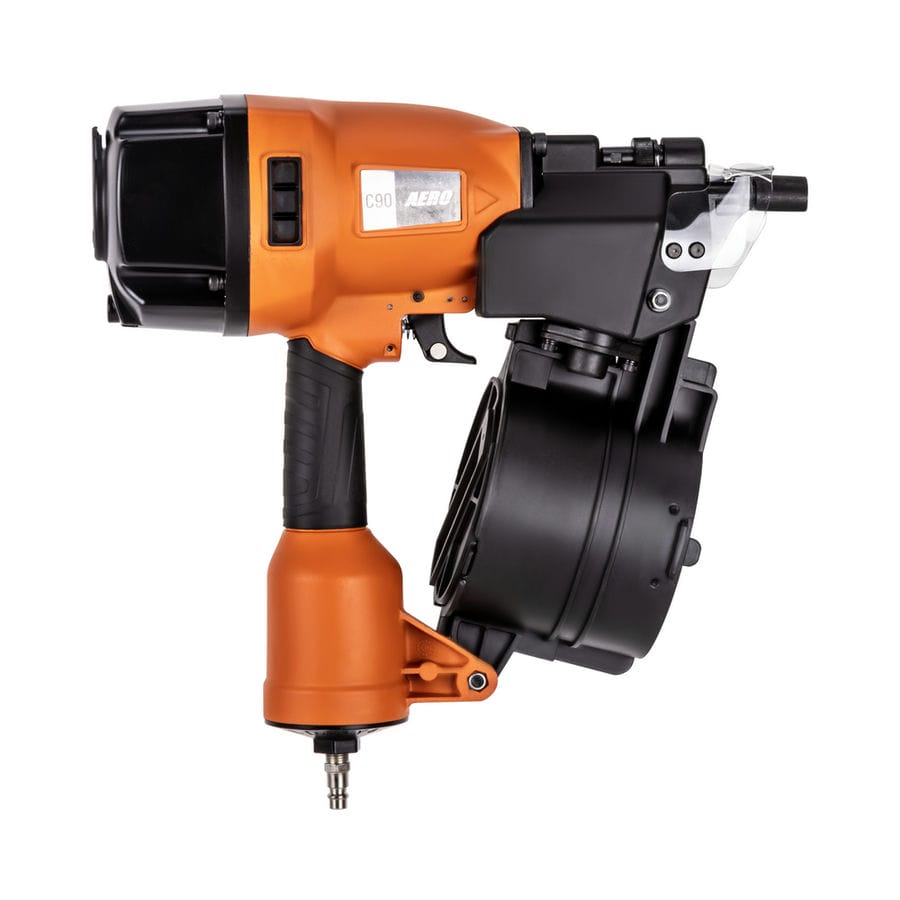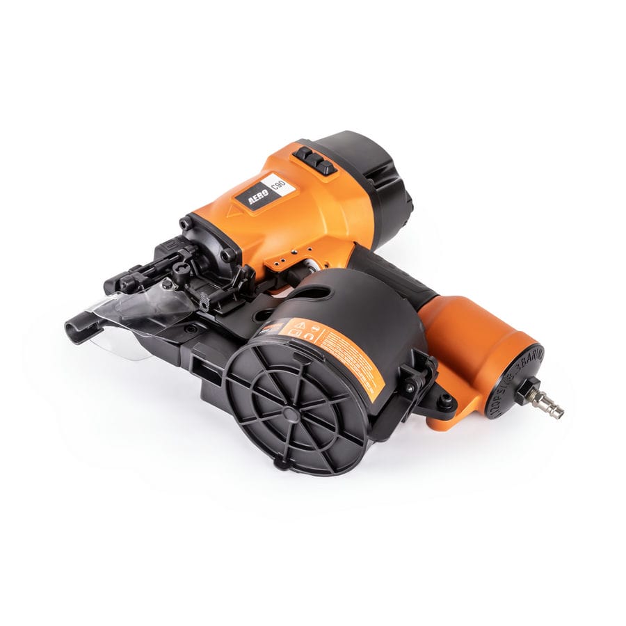 Паллетный нейлер или пневматический гвоздезабивной пистолет AERO C90 – мощный профессиональный инструмент для надежного забивания гвоздей в любую породу дерева. Предназначен для монтажа мягкой черепицы, кровельной дранки, обустройства заборов и черновых полов. Рекомендован к применению при изготовлении и ремонте паллет (поддонов) и других изделий из дерева, таких как тара, ящики и упаковка. Устройство позволяет регулировать глубину забивания гвоздей. Контактный предохранитель защитит от случайного выстрела. Удобный спусковой крючок обеспечит быструю работу. Инструмент использует барабанные (машинные) гвозди CNW длиной от 40 до 90 мм. Поворотный дефлектор, находящийся на крышке инструмента, позволит выбрать наиболее комфортное для пользователя и окружающих направление выхода воздуха. Эргономичная прорезиненная рукоятка снижает усталость и дискомфорт во время работы. Для работы инструмента необходим воздушный компрессор и подготовленная воздушная магистраль. AERO C90 имеет следующие рабочие параметры — рабочее давление — 4,8 — 8,0 бар и расход воздуха — 2,8 л / выстрел (при 6,0 бар). Для быстрого и надежного подключения оснащен быстросъемным разъемом Rapid M «папа». Массивный инструмент можно дооснастить подвесом, установив его в гнездо с резьбой М8 на тыльной стороне (приобретается отдельно).