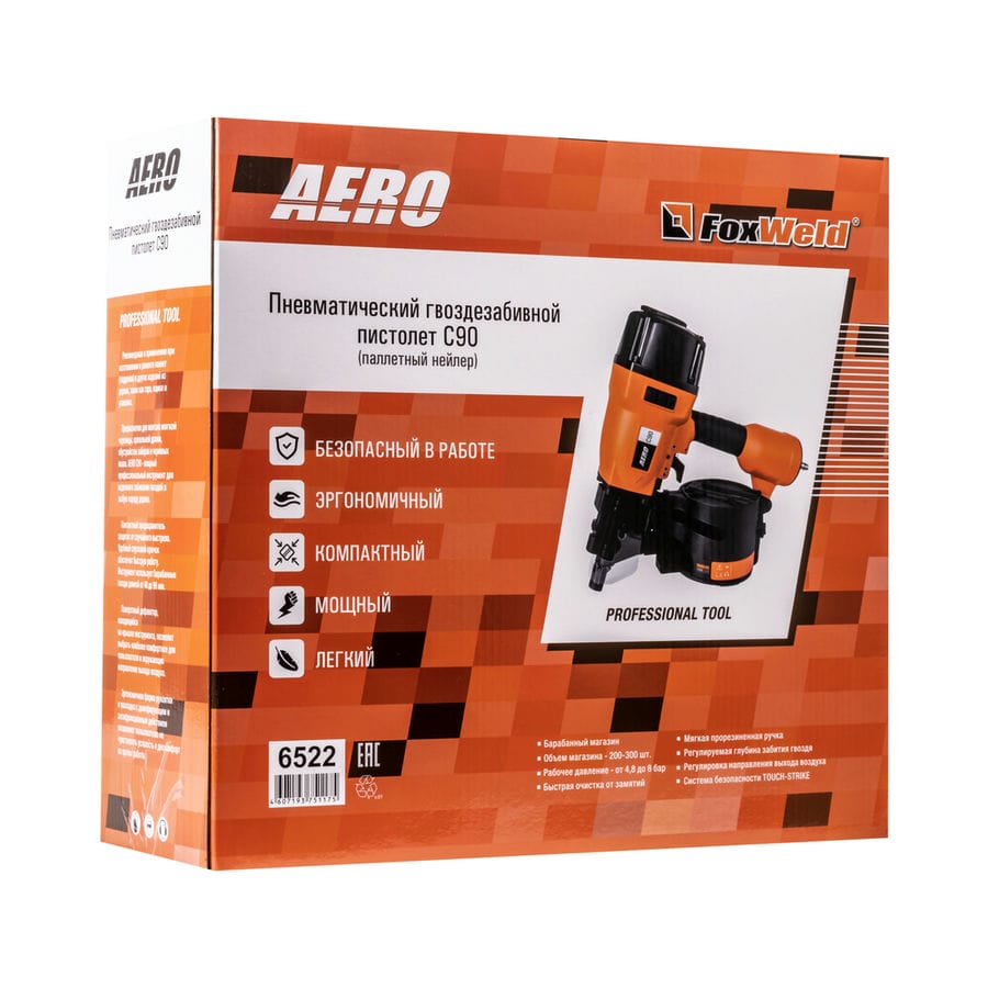 Пневматический гвоздезабивной пистолет – барабанный нейлер FoxWeld AERO C90