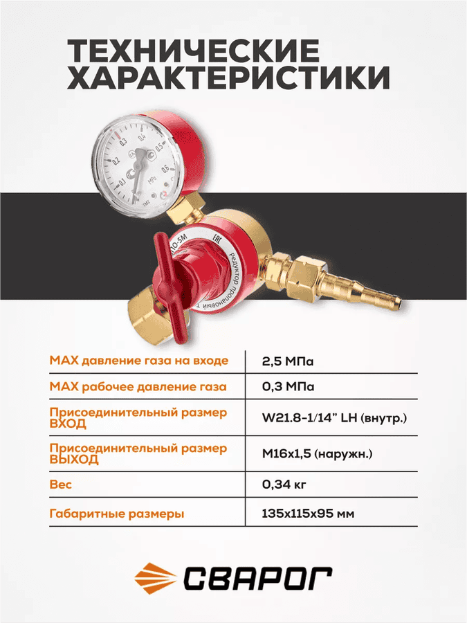 Редуктор пропановый Сварог БПО-5М (LR-137A), манометр с поверкой