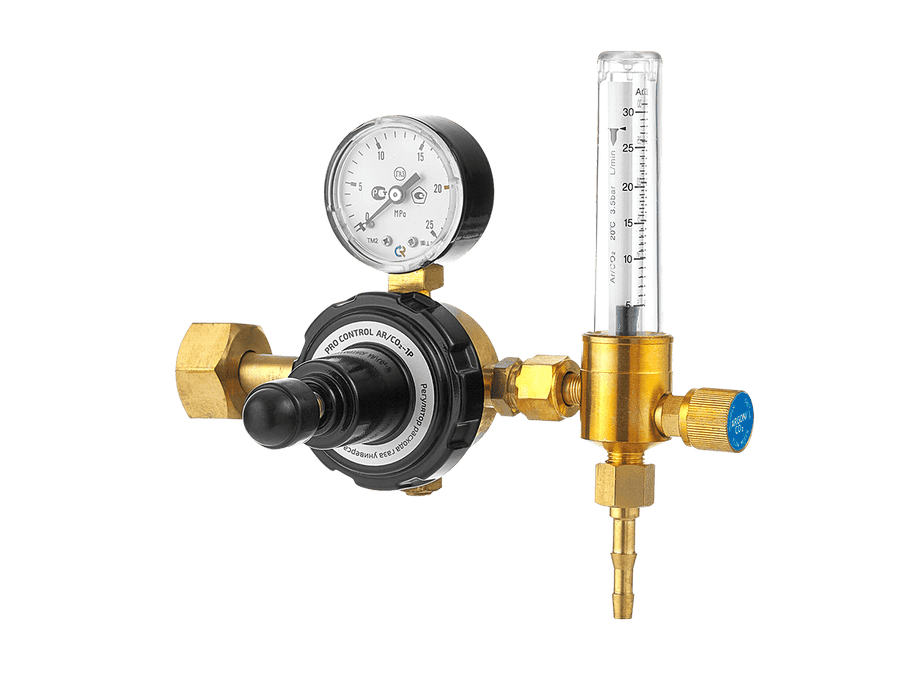 Регулятор расхода газа PRO CONTROL AR/CO2 1Р с поверенным манометром и одним расходомером для углексислого газа и аргона предназначен для понижения давления поступающего из баллона газа и автоматического поддержания постоянным заданного расхода при питании постов, установок в среде защитных газов, а также смежных процессов.
