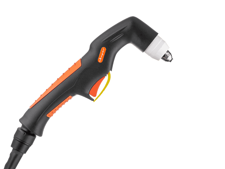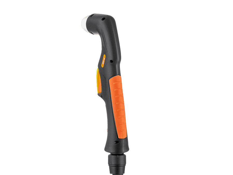 Специальный предохранитель курка препятствует незапланированному включению плазмотрона и повышает безопасность работы. Два пин-разъёма в рукоятке обеспечивают безопасность при смене расходных частей: плазмотрон не включится, пока не будет установлена защитная насадка.