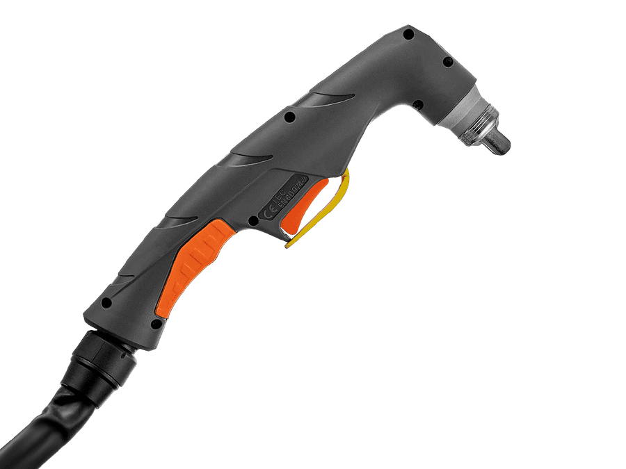 Специальный предохранитель курка препятствует незапланированному включению плазмотрона и повышает безопасность работы. Два пин-разъёма в рукоятке обеспечивают безопасность при смене расходных частей: плазмотрон не включится, пока не будет установлена защитная насадка.