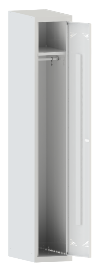 Ищете максимально надежный шкаф для раздевалки? ШО1 — это жесткая сварная конструкция, что позволяет увеличить срок службы в 2 раза! 🔒 Польский замок Euro-Locks с 2000 комбинаций защитит вещи, а усиленная дверь с вентиляцией прослужит вечно. Внутри: полка, перекладина и крючки. Антикоррозийное покрытие RAL 7035. Гарантия 24 месяца. Компактная глубина 300 мм. Эталон прочности и простоты!