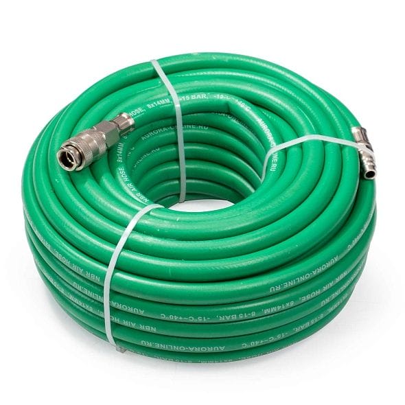 Шланг воздушный Aurora NBR 8×14мм, 20м с быстросъёмами (зелёный)