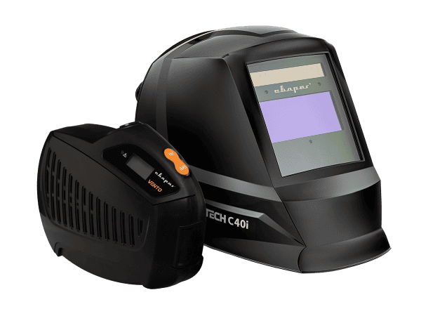 Сварочный щиток Tech C40I с устройством подачи воздуха Vento обеспечивает качественную очистку воздуха благодаря мощному фильтрующему блоку VENTO