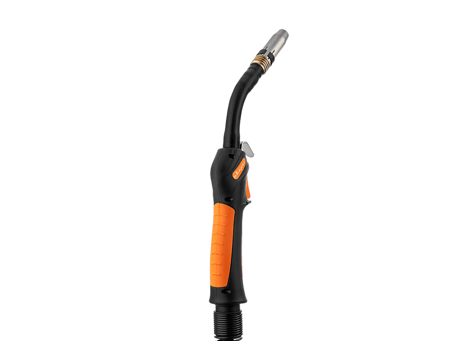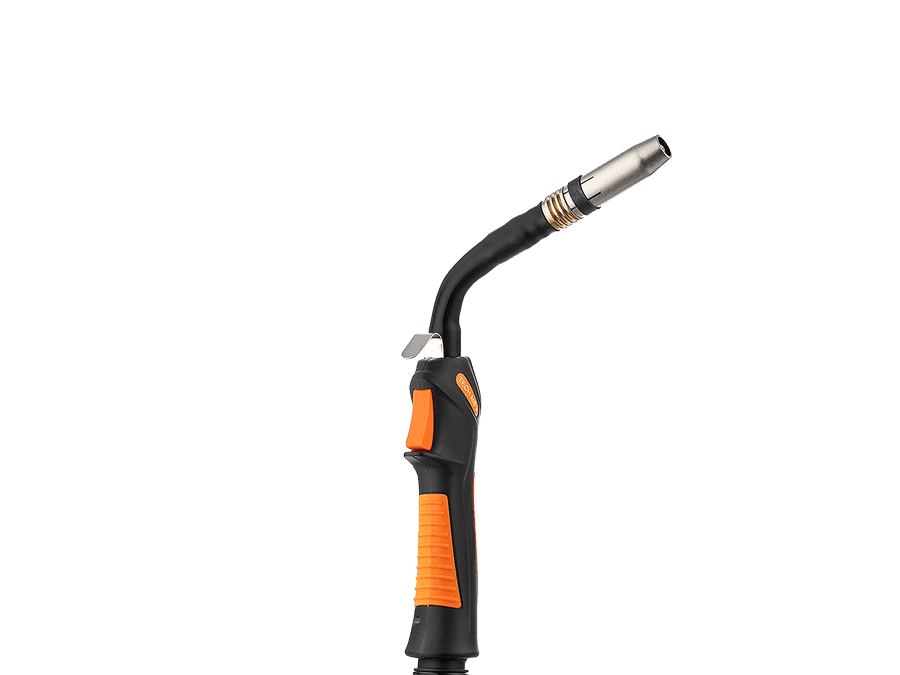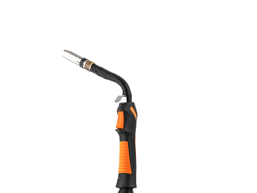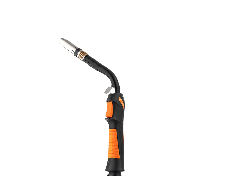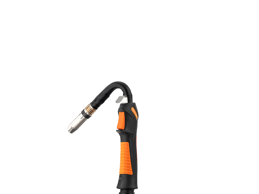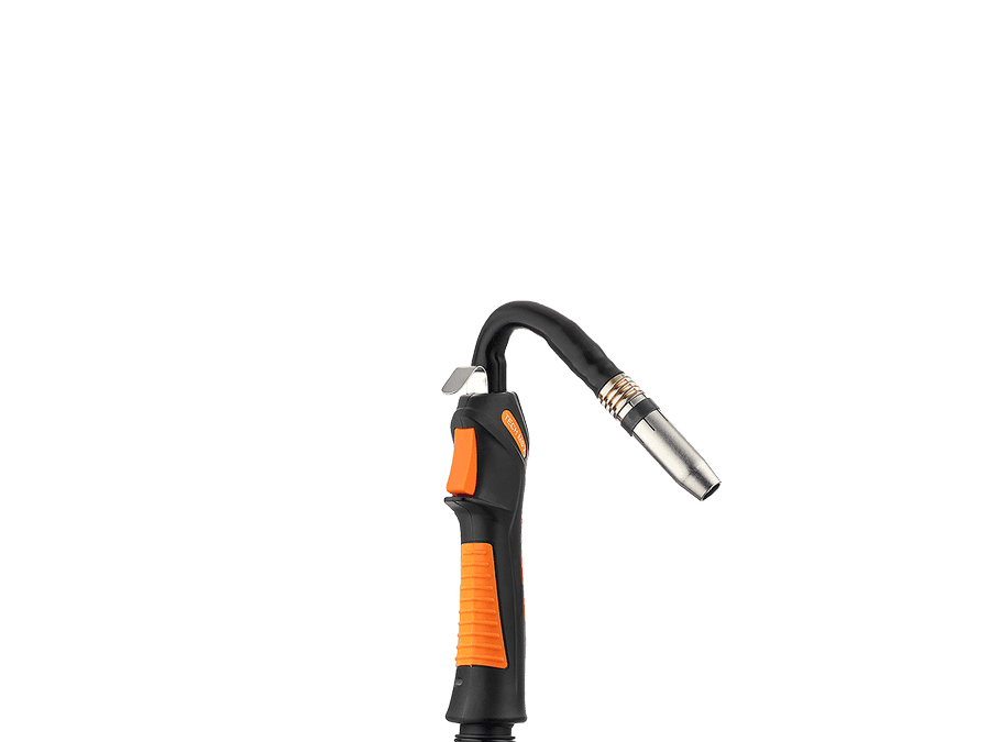 Шарнирное соединение повышает удобство вращения горелки во время работы. Также обеспечивается лучшее соединение между рукояткой и металлической пружиной. Надежная металлическая пружина исключает перегибание кабеля и обеспечивает более плавную подачу проволоки в любом положении горелки.