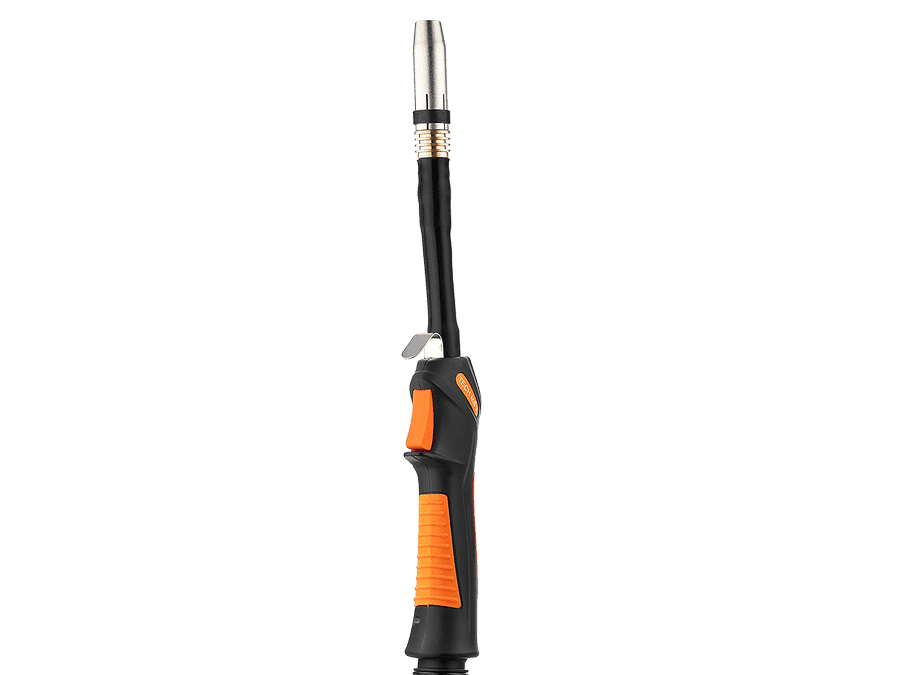 Специальная конструкция гусака позволяет изгибать его практически под любым углом относительно центральной оси— 270º. Это существенно расширяет возможности позиционирования горелки в пространстве и обеспечивает комфортную сварку в любых пространственных положениях, а так же в труднодоступных местах.