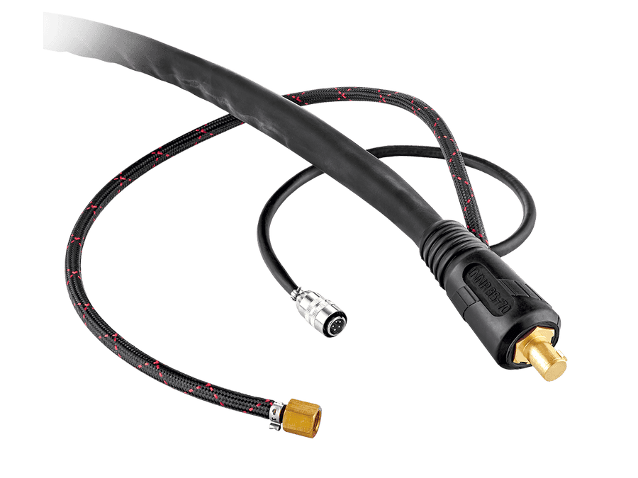 Благодаря замене стандартной резиновой оплетки на тканевую силовой кабель обладает невероятной гибкостью и легкостью, что существенно улучшает комфорт во время сварки. Сечение силового кабеля обеспечивает хорошую проводимость тока и позволяет работать на максимальных нагрузках. Силовой кабель обладает равномерной теплопередачей. Использование высокотехнологичных материалов кабеля повышает его износостойкость