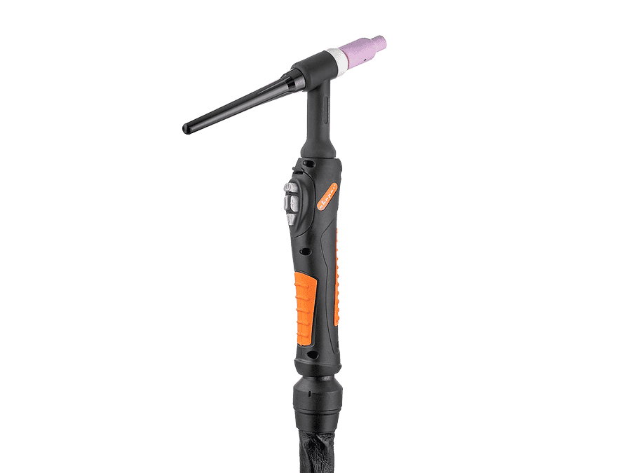 Сварочная горелка TECH TS 26 (ОКС+М10×1, 5 ПИН) предназначена для аргонодуговой сварки неплавящимся вольфрамовым электродом (TIG/WIG) на токах до 180 А
