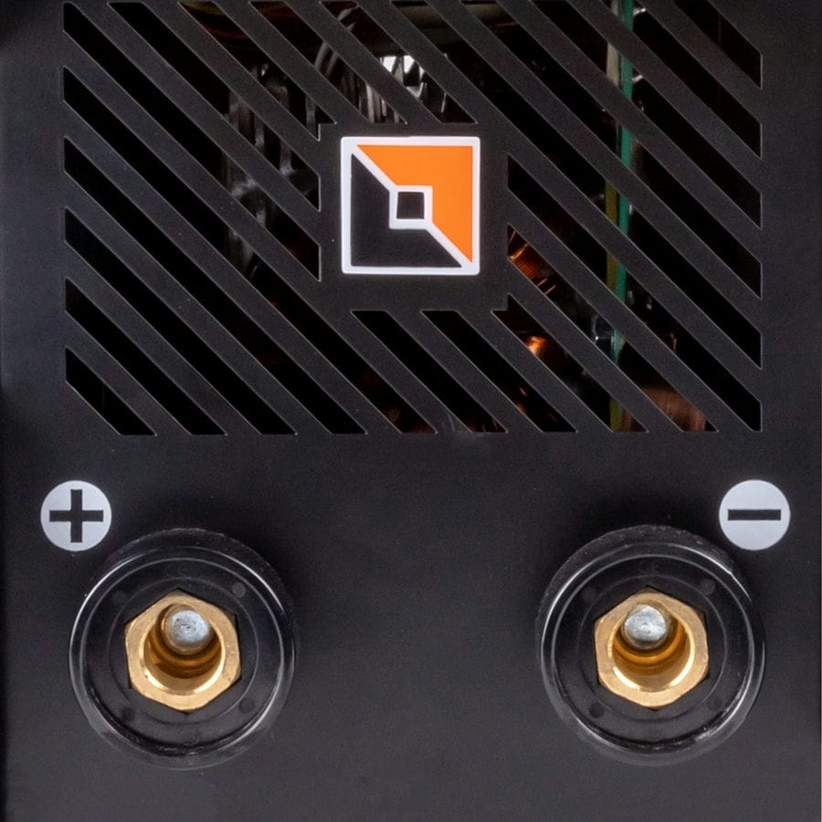 На лицевой панели рядом с клавишами управления расположен информативный цифровой экран, на котором отражены процессы и параметры сварки, установленные значения настроек. Задать параметры сварки можно при помощи двух кнопок и шаговой ручки регулировки. С помощью одной кнопки выбирается режим сварки: ручная дуговая покрытым электродом (MMA) или сварка неплавящемся вольфрамовым электродом (TIG LIFT). Вторая кнопка позволяет переключать параметры сварки, а при помощи плавного вращения ручки выставляются числовые значения.